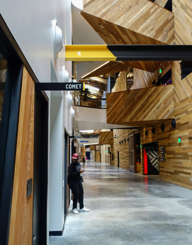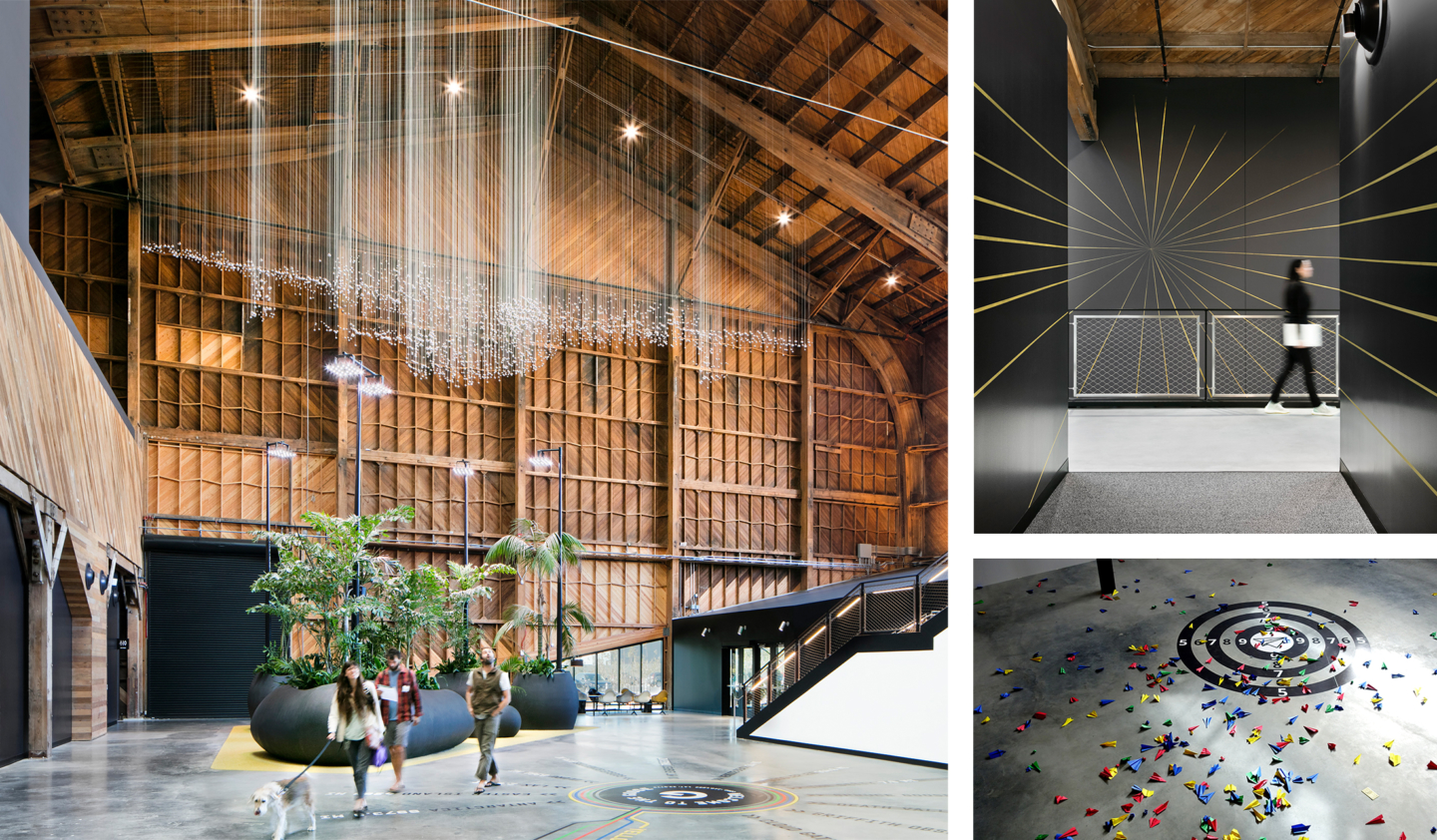 For Google’s new headquarters in the former Howard Hughes “Spruce Goose” airplane hangar in Playa Vista, we created an experiential building narrative of “flight” that joins the past and present of the Goose building and informs every level of its experience.