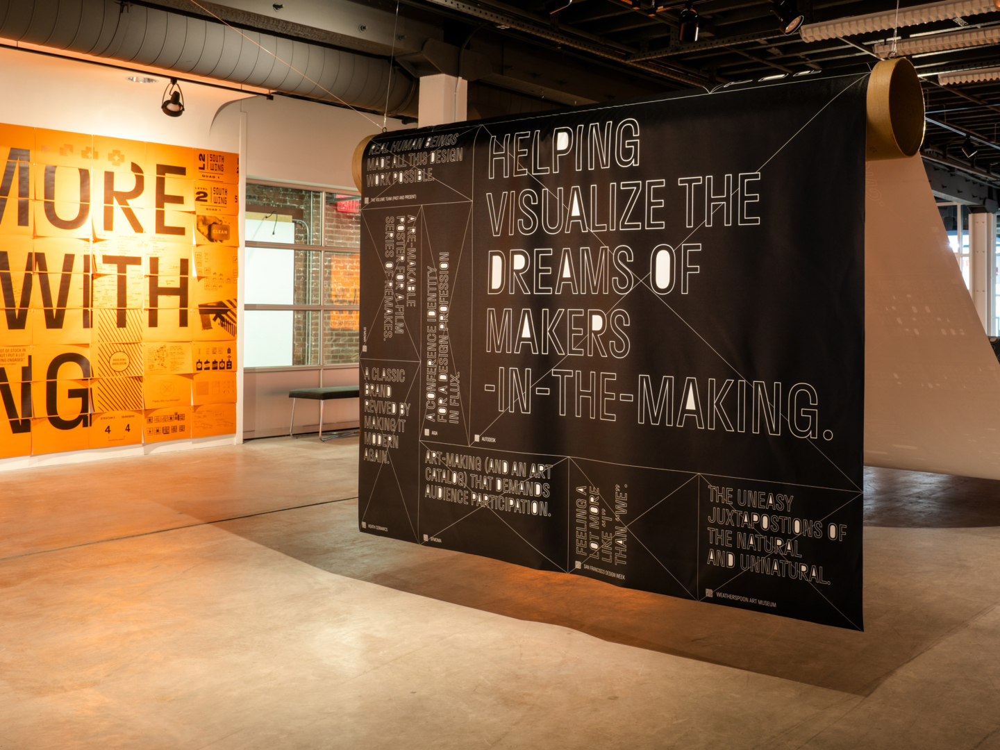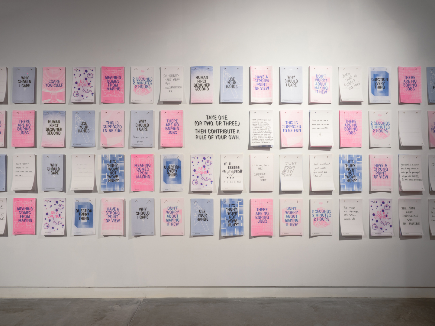 The result was Volume Inc: This Will (Not) Be Easy. Where one would usually expect to see the actual work first and foremost, with the philosophy and process reduced to wall text (if seen or read at all), our exhibition completely reverses that hierarchy. Instead, it’s a snapshot of all the thinking and making that goes into the final product.