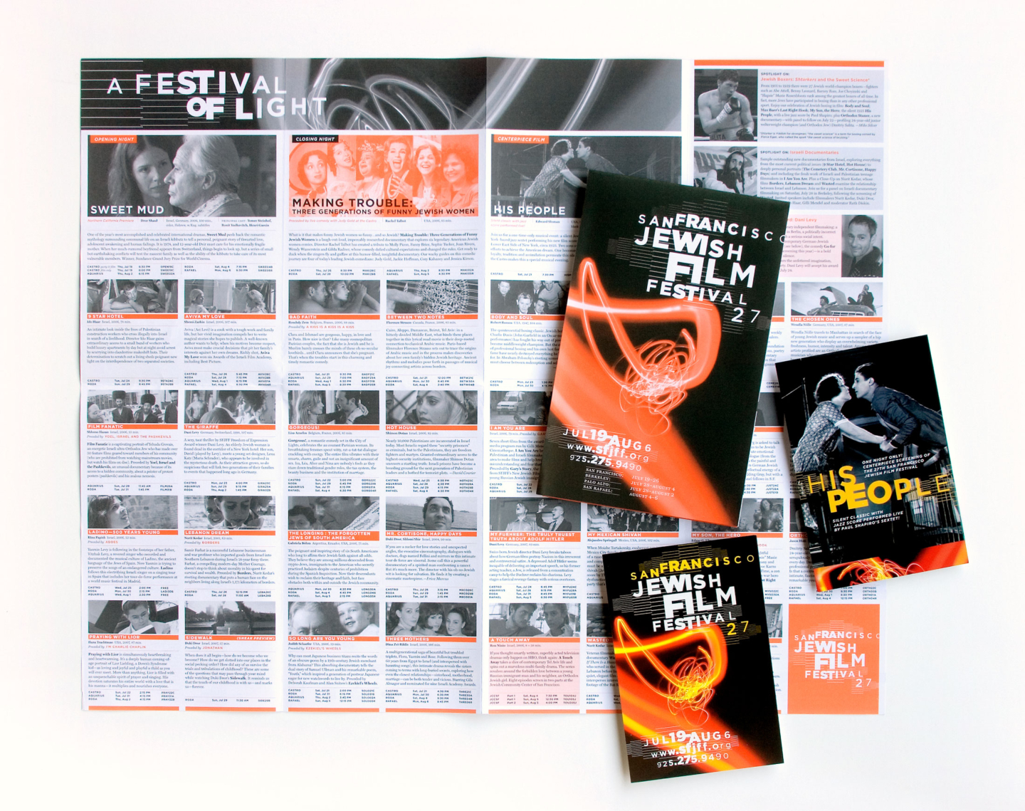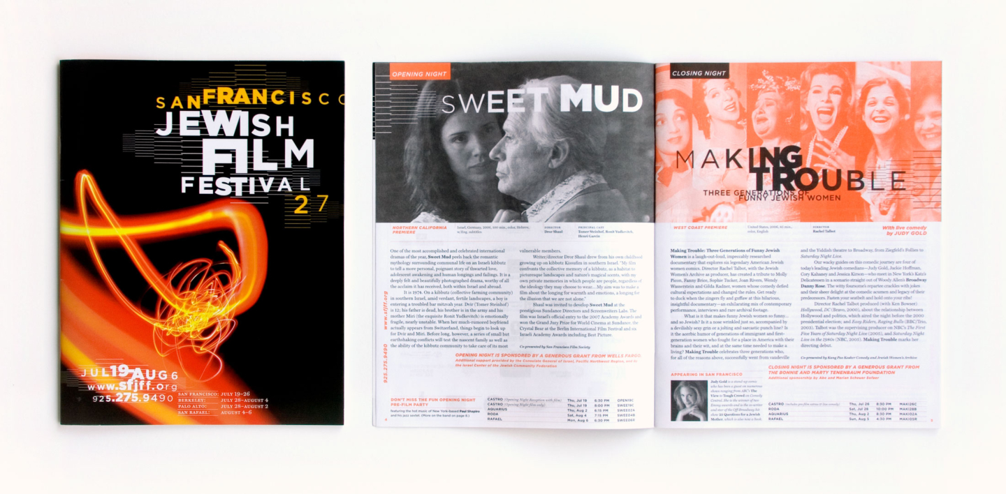 For three consecutive years, Volume designed the branding and promotion for the San Francisco Jewish Film Festival. Rather than fall back on Jewish clichés and using film stills to drive the visual story, we instead proposed a communications strategy that was not only distinct from other local film festivals, but provided a new image for Jewish-related culture altogether in the Bay Area. That strategy has provided a through-line that has informed the promotion of consecutive festivals well after we stopped designing it. After 3 years of flat ticket sales, festival attendance increased by 15% the first year and continued to increase over the next two.